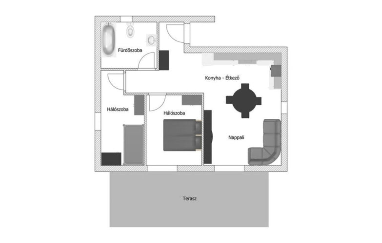 Szobák száma: Nappali + 2 háló