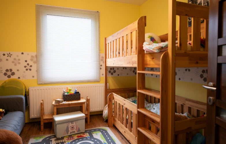A két gyerekszoba üde és fényes hangulatát a nagyméretű ablakok szolgáltatják, a szülői hálóból a parkosított zöld területre tekinthetünk ki.