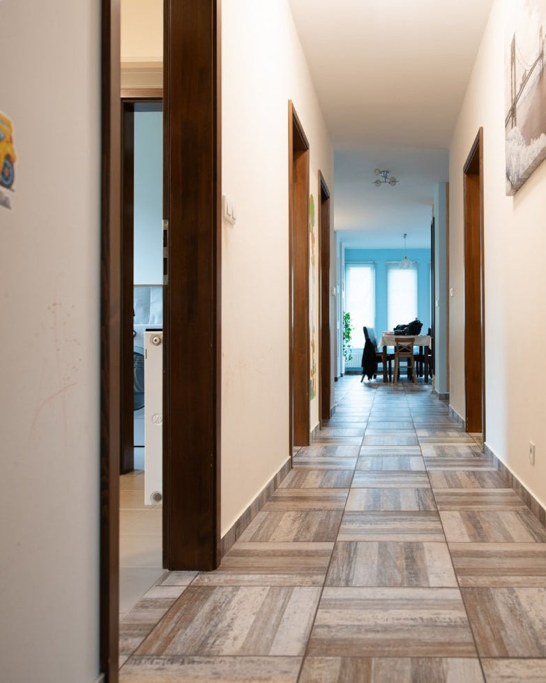 A házba három irányból tudunk bejutni, a garázsból, a 27nm-es fedett teraszról, illetve a bejárati ajtó felől; funkcionálisan is kiváló ez a hármas megoldás.