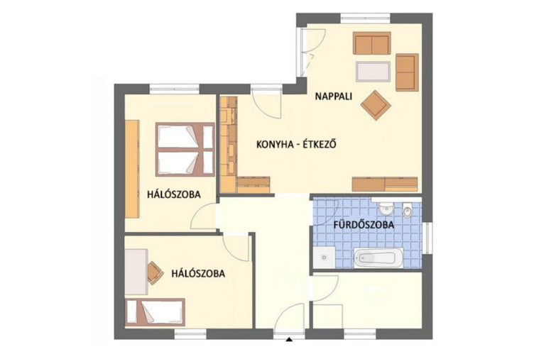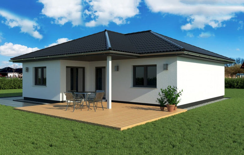 Az átgondolt tervezés gazdaságos fenntarthatóságot és igazi kényelmet biztosít mindenki számára. A ház igazán praktikus, tágas nappalival + 2 hálószobával rendelkezik ami igény esetén nappali + 3 hálóssá alakítható.