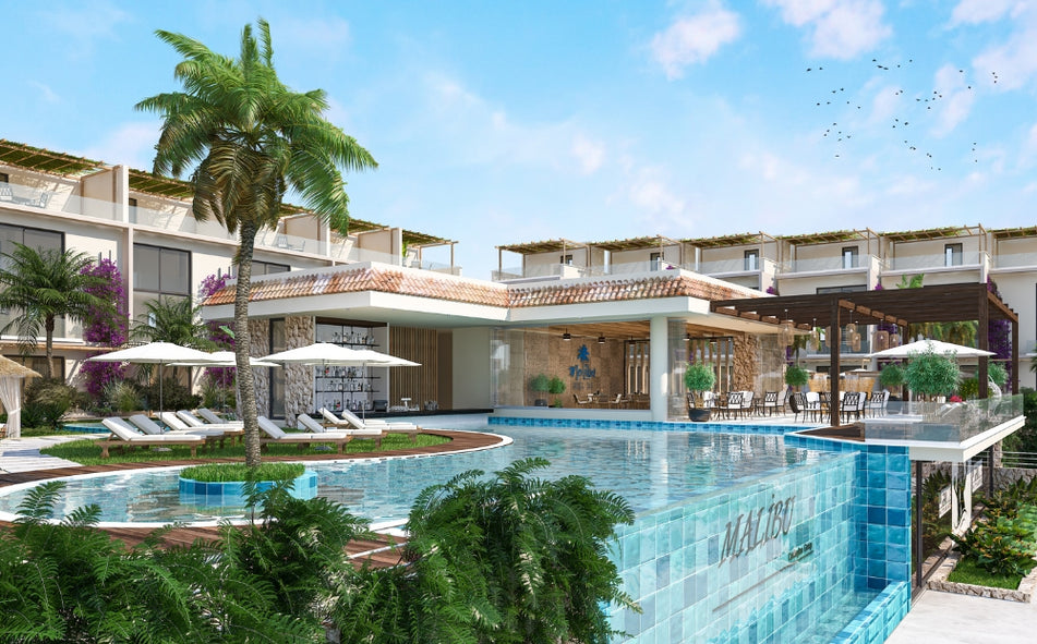 Malibu projekt egy csendes tengerparti helyen található mindössze 2 perces sétára, és innen páratlan kilátás nyílik a Besparmak-hegységre.