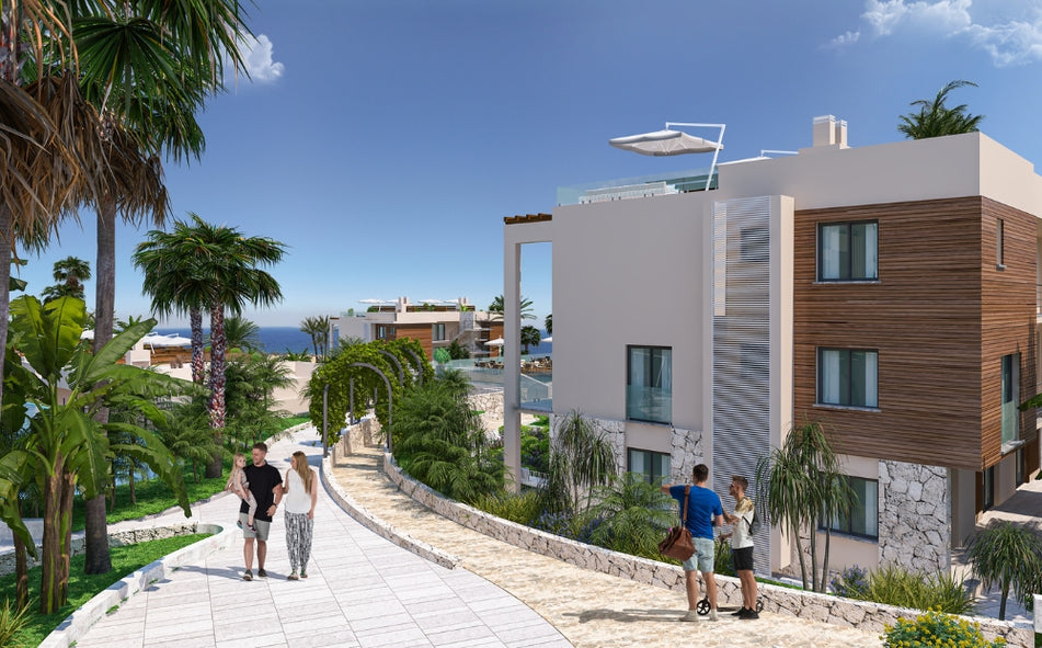 Tengerparti ingatlanok: Esentepe tengerpartját fényűző villák és apartmanok tarkítják, amelyek közvetlen hozzáférést biztosítanak a strandhoz, és zavartalan kilátást nyújtanak a tengerre.